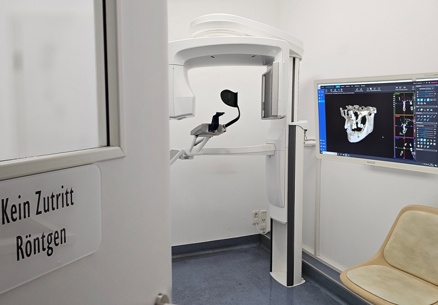 Im Rahmen der Umsetzung weiterer innovativer Konzepte hat das Zentrum für Mund-Kiefer-Gesichtschirurgie und Zahnmedizin einen der weltweit modernsten Volumen-Tomographen installieren lassen. Das Gerät „Viso G5“ aus Finnland liefert unglaublich schnell präzise dreidimensionale Darstellungen von allen Regionen des Viszerocraniums bis hin zum gesamten Schädel. Das alles geschieht mit einer extrem reduzierte Strahlungsdosis. Damit ist es sogar auch möglich, bei entsprechenden Indikationen auch Kinder zu untersuchen.